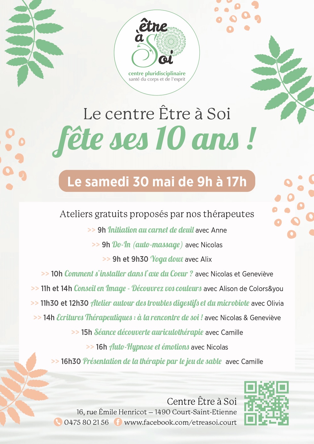 Situé au coeur de Court-Saint-Etienne, le Centre Être À Soi rassemble une équipe pluridisciplinaire de professionnels centrés sur la santé et partageant des valeurs communes : mettre l’humain au centre de notre attention, dans toutes ses dimensions, corps, esprit, et émotions.
